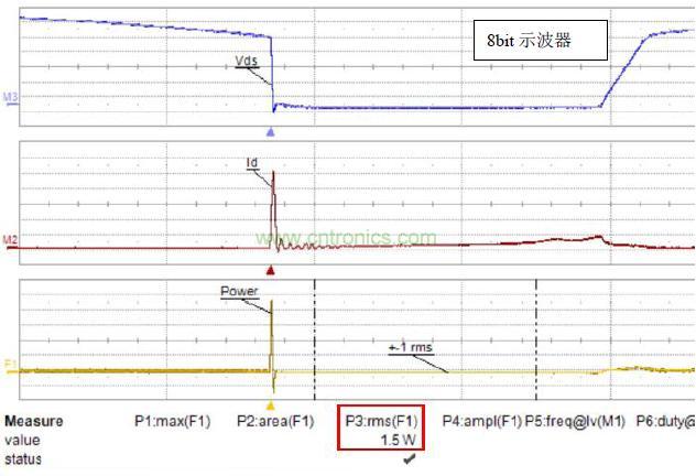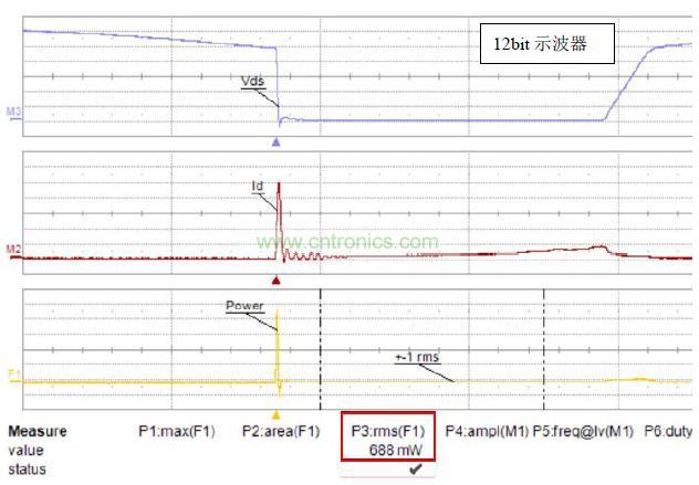 而HRO的高分辨率特性使這種誤差大大減小。通過對比測試,8bit示波器測量的導通損耗是1.5W,HRO測量的導通損耗是688mW :