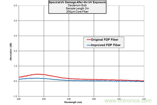 對于深紫外線領域應用,高水平紫外線輻射的影響會引起光纖傳輸退化,光纖傳輸通常在數小時后發生損耗。