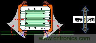 如果向高介電常數(shù)型的電容器(諸如`溫度特性為:B, R, X5R, X7R,Y5V的電容器)施加交流電壓,由于電致伸縮效應(yīng),會(huì)造成多層電容器芯片伸縮注)。根據(jù)電介質(zhì)一般的泊松比為0.3的特性,會(huì)在與積層方向垂直及平行的方向上產(chǎn)生伸縮(如圖2所示),其結(jié)果是基板表面發(fā)生振動(dòng)從而產(chǎn)生人耳可聞的聲音。通常情況下,因?yàn)檫@種振動(dòng)頻率遠(yuǎn)遠(yuǎn)高于人耳可聽(tīng)頻率范圍(20Hz~20kHz),所以即使向單體電容器施加人耳可聽(tīng)頻率范圍的信號(hào)電壓,也不會(huì)形成人耳可聞程度的聲音(嘯叫)。但是,如果將電容器封裝于基板,那么該振動(dòng)會(huì)傳導(dǎo)至基板,振動(dòng)就會(huì)放大(諧振)。其結(jié)果是人耳可以感知到類似于“吱吱”的聲音。雖然芯片和基板的振幅僅為1pm~1nm左右,但其聲音卻大到人耳輕易識(shí)別的程度。