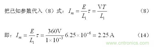 根據上面已知參數我們可以利用(8)式來計算流過開關變壓器初級線圈的最大電流Im,然后再求其極限電流Imax的值,即:測試開關變壓器初級線圈電感時選用的迭加電流值。