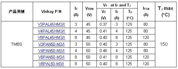 圖1:Vishay推出用于汽車和商業應用的新款45V和50V TMBS整流器