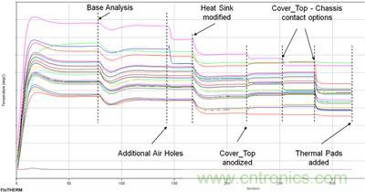為提升整體設(shè)計做出調(diào)整,如產(chǎn)品的機械、電氣和 EMC 性能間的協(xié)調(diào)以及溫度限制、可制造性或成本等其他限制條件,有利于實現(xiàn)連續(xù)改進。對每個學科而言,這些改進可以看作是對基礎(chǔ)設(shè)計的完善。在進行熱設(shè)計時,則可視為對監(jiān)控點溫度的調(diào)整,從而與將用作測量物理原型的傳感器的位置相匹配。