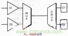 高 密度設(shè)計(jì)的布局必須留有空地并相當(dāng)?shù)卣归_,才可完成,這便導(dǎo)致連線長,每個線上開關(guān)多,這些因素產(chǎn)生不良的時序結(jié)果并增加了功耗。此外,塊中的邏輯趨向于 分類集結(jié)在一起,總線跨越不同塊時需走過較長的距離。在一個設(shè)計(jì)中采用時分復(fù)用寬總線技術(shù),可減少總線的數(shù)量,有利于時序和功耗。再者,在DSP設(shè)計(jì)中, 數(shù)據(jù)是相關(guān)的,這表明大多數(shù)數(shù)據(jù)位并未改變狀態(tài)。攜帶相關(guān)數(shù)據(jù)的總線應(yīng)盡量復(fù)用在一起,進(jìn)一步減少M(fèi)UX、DEMUX邏輯中的開關(guān)活動(圖5)。