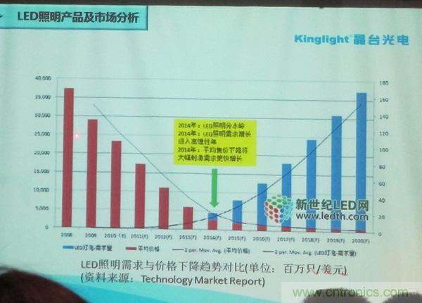 晶臺光電技術(shù)總監(jiān)邵鵬睿看好LED照明未來的發(fā)展,他說,2014年LED照明平均售價的下降將大幅刺激需求快速增長。而價格和可靠性是當前影響LED進入室內(nèi)照明的最重要因素。