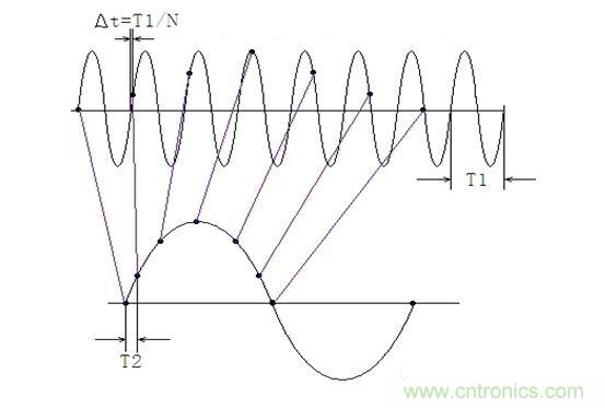 可以看到,等效采樣方法在輸入信號一個周期內僅采樣一個點且每個周期采樣的相位有遞增關系(圖1中△t),調整這個遞增相位可以達到調整相位分辨率的目的。