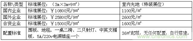1、展位收費標準