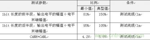 示波器測(cè)量1bit的差分電平顯性位的末端幅值,然后在測(cè)量前半段(50%)差分電平最大值,兩者相除,如果在81%~150%則通過;