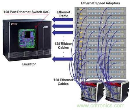 大量埠、流量增加、延遲降低、安全性整體提升以及易用性,使得如今的網路交換機和路由器成為巨大的電路設計,達到了五億邏輯閘數量級,僅屈居于最大的處理器和圖形晶片之后。網路SoC的設計,包含128埠乙太網介面,且可支援1/10/40/100/120Gbit/s等不同的連結速度,在實體晶片可用之前,驗證此類復雜積體電路(IC)設計是一項難以完成的任務。