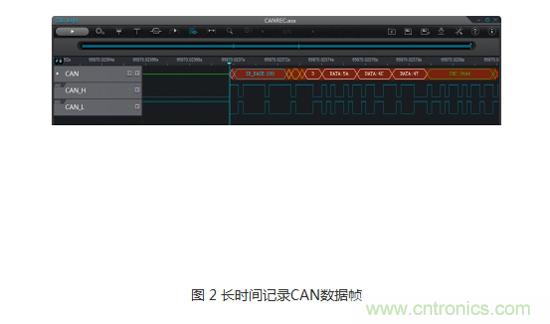 記錄模式非常適用于低速串行協議分析,如CAN、LIN、FlexRay、SPI、IIC、UART等。不間斷長時間的記錄,確保了數據幀的完整性,排查偶發異常故障非常有用。