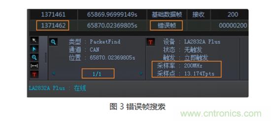 這個大可放心,通過強大的搜索或過濾功能,進行“錯誤幀”定位。不用幾十秒,就完成了100多萬幀數據的排查,并發現定位一個錯誤幀(1371462幀),如圖 3所示。