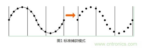 首先介紹的是標準捕獲模式,在該模式下,示波器會對采集到的信號進行等間隔采樣。
