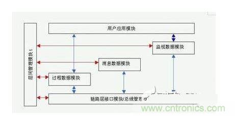 由于在MVB系統中,過程數據,消息數據,監視數據是三種不同的通訊機制,因此,MVB系統軟件的模塊設計如圖6。