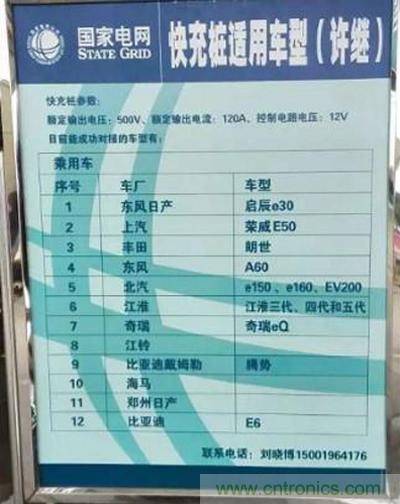 充電樁企業與電動車企業的數量上的蓬勃增長,要保證所有充電樁與汽車的兼容性成為了一大難題,雖然2015充電樁新國標對于充電硬件接口及通訊都做出了規定,但目前現狀是不能保證所有樁與車的全部兼容,如下為高速公路充電站拍到的一張圖片。