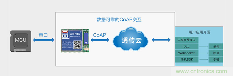 基于云服務(wù)的CoAP協(xié)議傳輸?shù)奶卣魇菙?shù)據(jù)可靠,簡單易用。通過連接有人透傳云實(shí)現(xiàn)交互,透傳云會提供二次開發(fā)接口,供終端應(yīng)用開發(fā)。