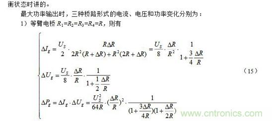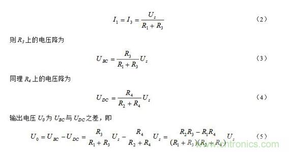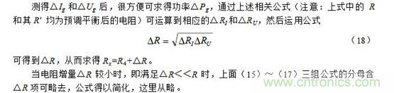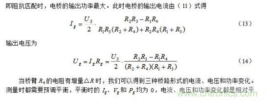 注意:上面(7)~(9)式中的R和其R′ 均為預(yù)調(diào)平衡后的電阻。此外,當(dāng)電阻增量△R較小時,即滿足△R《《R時,上面(7)~(9)三式的分母中含△R項可略去,公式可得以簡化,這里從略。