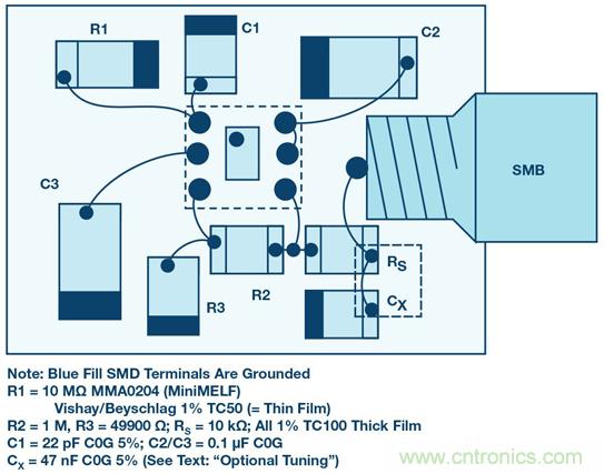 為獲得最佳精度和長期穩定性,R2、R3或RS可以是0.1%薄膜電阻,例如TE CPF0603。C2/C3可以是大多數電介質電容中的一種;C0G可用來保證低漏電流。