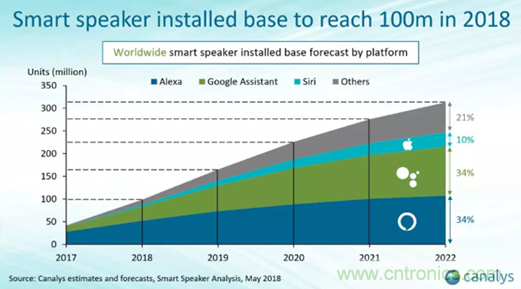 自亞馬遜在2014年底發(fā)布了其第一款智能音箱Echo后,全球、尤其是國內(nèi)掀起了一股狂熱的智能音箱潮,據(jù)不完全統(tǒng)計(jì),截止到今年三月,中國大陸有近百家廠商進(jìn)入智能音箱市場。分析機(jī)構(gòu)Canalys最近報(bào)告指出,預(yù)計(jì)今年全球智能音箱的保有量突破一億部,到2020年這個數(shù)字將會上升到2.25億智能音箱廠商競爭,其實(shí)是智能家居生態(tài)入口的競爭。