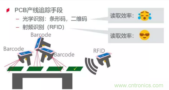對于外觀相似的PCB板,精準分揀和每一道工序的數據記錄依賴于每塊板上的身份識別碼。傳統的光學身份識別需要掃碼槍對準板上二維碼位置和方向一一掃描,這對于柔性生產而言顯得效率低下。因為同一生產線的型號生產經常切換,掃碼槍的對準位置也要跟著頻繁調試和測試。