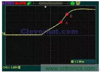 過B點后電流再次出現拐點,那時因為電容放電后電壓下降并且采樣電壓上升,使得加電感上的電壓降低引起。