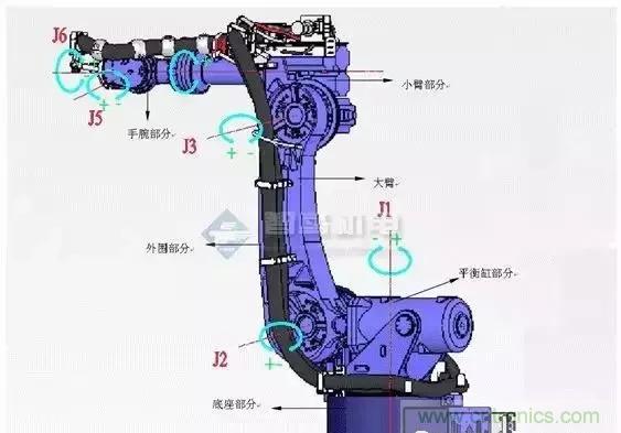.常見機器人自由度數一般有5~6個。有些機器人還附帶有外部軸。
