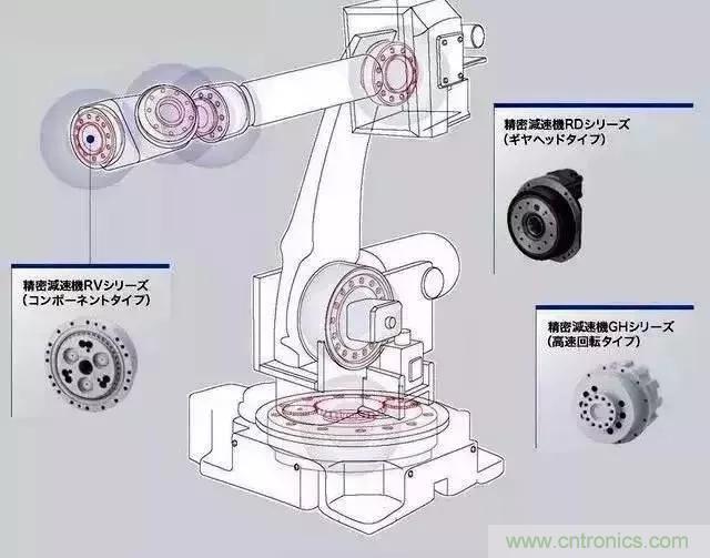 下面介紹工業機器人核心精密零部件:減速器,與通用減速器相比,機器人用減速器要求具有傳動鏈短、體積小、功率大、質量輕和易于控制等特點。減速器行業,我們不得不提這行業兩巨頭是Nabtesco(帝人,也叫納博特斯克)和Hamonica Drive(哈默納科),業界俗稱(RV減速器和諧波減器)。他們幾乎壟斷了全球的機器人用減速器。這兩種減速器都是微米級的加工精度,光這一條在量產階段可靠性高就很難了,更別說幾千轉的高速運轉,而且還要高壽命。目前市面上的大量應用在工業機器人上的減速器主要有兩類:RV減速器和諧波減速器。