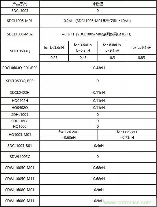 順絡電子射頻電感的補償值在產品Datasheet中都有注釋。
