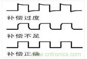 3.如果波形不正確,請調整探頭。如下圖三所示,直至波形為上面的補償正確波形。