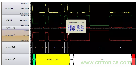 圖6波特率異常(位寬度從2us突然變成1.6us),導致位錯誤引起錯誤幀。位寬的不穩定是波特率不穩定導致的,最有可能的原因是晶振問題,建議更換晶振測試。