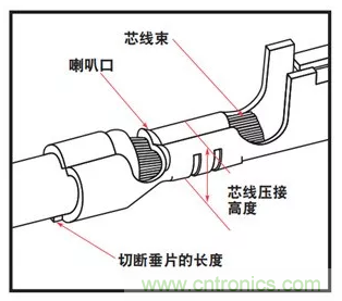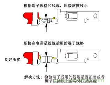 過大的壓接高度也無法有效壓接芯線,會形成壓接區過大的無效空隙,使芯線和端子金屬之間沒有足夠的緊接。