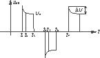 1)t1-t2時段 uAB處于高毛刺階段,毛刺最大值比正常值Uo高出ΔU,這時由D1,D2,D11,D12形成全橋整流電路,對C充電,具體講是D1和D12導(dǎo)通,uAB的毛刺部分將被C所吸收,使uc=Uo+ΔU。顯然,C越大,ΔU越小;毛刺越高,ΔU越大。