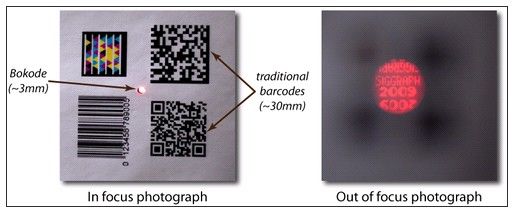 美國(guó)麻省理工學(xué)院(MIT)Media Lab研究人員發(fā)明出一種光學(xué)標(biāo)簽,它儲(chǔ)存的數(shù)據(jù)比同尺寸條形碼多數(shù)百萬(wàn),卻沒(méi)有RFID標(biāo)簽的安全疑慮。這種名為Bokode大小只有3mm,比傳統(tǒng)條形碼小很多,它藉由測(cè)量Bokode標(biāo)簽發(fā)出的光線亮度和角度來(lái)形成數(shù)據(jù)。MIT實(shí)驗(yàn)室的博士后研究員Ankit Moha為論文的主要作者。共同作者包括副教授Ramesh Raskar、 研究生Grace Woo、博士后研究員Quinn Smithwick及大阪大學(xué)的Shinsaku Hiura。