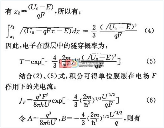 x指向?yàn)樾酒姌O表面到壓焊點(diǎn),為膜層中z方向任意點(diǎn)的勢壘,E是垂直芯片電極表面速度為vx電子的能量。