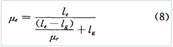 式中,μe磁芯的有效磁導(dǎo)率,脅為磁芯的相對(duì)磁導(dǎo)率,μr為磁芯的有效磁路長度,名為非閉合氣隙長度。