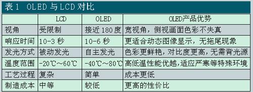 有機發(fā)光顯示器件之所以受到人們的青睞,是因為其與LCD為代表的第二代顯示器相比,有著突出的技術優(yōu)點(見表1):