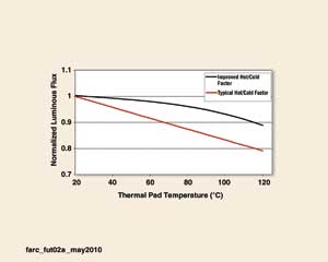 熱/冷因數(shù)的改善增加了LED的工作溫度范圍,讓照明設(shè)計師有機會在LED極限內(nèi)的任何結(jié)溫下工作。