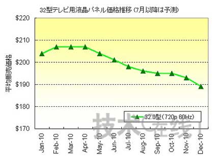 考慮到電視機廠商的面板以及完成品的庫存調整沒有取得進展,針對2010年下半年的需求期,面板供貨量本身的增加將趨于緩和。包括暢銷的32英寸電視機面板、筆記本電腦用面板和顯示器用面板在內,液晶面板的庫存調整將很有可能從7月份持續到8月份。因此,8月份的面板價格不會反彈,將與上月持平(價格維持)或繼續保持小幅調整。而且,很有可能從季節需求告一段落的11月前后開始加速下滑。另外,筆者想事先補充的一點是:如果9月份以后面板及完成品繼續進行存調整,那么不用等到11月,面板價格就有可能開始加速下滑。