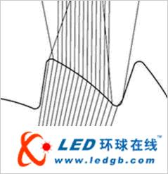 進一步分析知道,由于LED光源是在光軸部分的發光強度大,邊緣部分小,而分厚度法得到的鋸齒恰恰是在中間部分比在邊緣部分有更大的齒距(見圖3),因此在光強度大的地方損失會少,即總體上可以有更少的光損失。