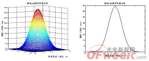 對于以上分析的兩種陣列,所用LED及數目均相同,但是根據仿真結果我們可以看出,在照度大小、照射區域等方面存在很大的區別。代表平面的矩形分布的陣列中心照度比較大,達到了40Lux,但是其照射區域比較小,20Lux內僅有約0.75m的范圍內,而代表曲面的內半圓柱表面分布的陣列中心照度比較小,僅為3.3Lux,但照射區域比較大,最大照度值一半的區域在一方向上達到了7m。