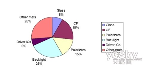 其中背光源的25%成本是基于CCFL的數據,如果采用LED作為背光源,它所占的成本將大大超過這個比例,大約要占到50%的成本。采用場順序制以后,拿掉了濾色片就相當于發光效率提高了70%,這是非常可觀的。這意味著LED的數量可以減少70%,LED的成本就可以減少70%。而且LED數量減少70%以后,其發熱量可以減少70%,耗電也可以減少70%。