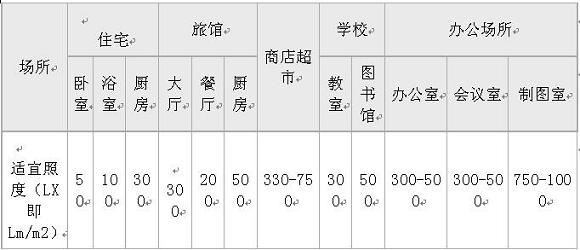 (注:照度指單位面積上的光通量,單位為L(zhǎng)x即Lm/m2。比如說一間臥室的面積為20m2,所需照度為50Lx,那么只需一盞光通量為1000Lm(20m2*50LX=1000LM)的3U20W節(jié)能燈。)