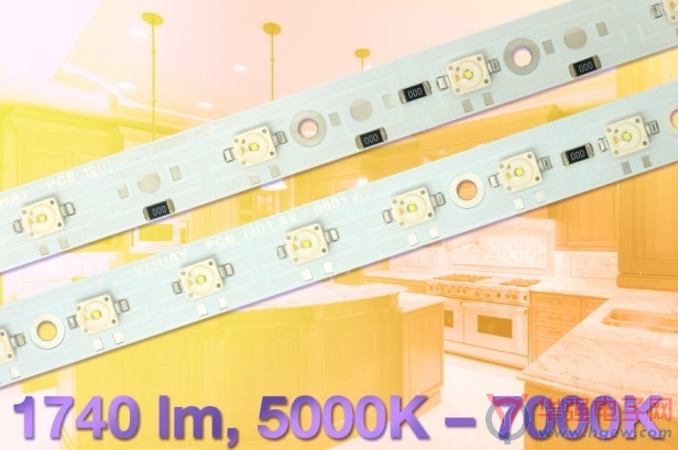日前,Vishay Intertechnology, Inc.宣布,推出3款安裝了6個或12個高亮度LED的冷白光LED模塊--- VLPC0601A2、VLPC1201A2J、VLPC1201A2。VLPC0601A2在一個240mmx14mm的PCB板上裝了6個LED,光通量為870流明;VLPC1201A2J在240mx14mm的PCB板上安裝了12個LED,光通量為1740流明;把VLPC1201A2J簡單地分成兩半,每一半就是一個VLPC1201A2模塊,每個模塊的尺寸是120mmx14mm,裝有6個LED,光通量為870流明。這些模塊使設計者能夠為其應用選擇最合適的PCB和光強。