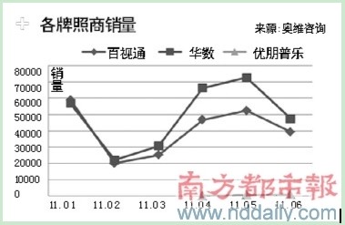 智能電視的興起不僅給量額齊跌的彩電市場染上一抹亮色,也給內容端的上位提供契機,數據顯示,由于華數、百視通較早拿到牌照,已在終端市場上形成了雙雄鼎立的局面。