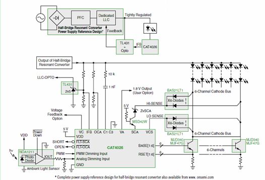 CAT4026 是應(yīng)用于大尺寸側(cè)光式LED 背光液晶電視的多通道線性LED 驅(qū)動(dòng)器的高性價(jià)比方案,可以單顆IC 支持6 通道,且易于分級(jí)為多達(dá)12 個(gè)或18個(gè)通道(相應(yīng)采用2 個(gè)或3 個(gè)控制器),目標(biāo)能效高于90%,典型能效達(dá)94%。此外,該驅(qū)動(dòng)器還提供正向電壓監(jiān)測(cè)功能,可以限制總體功耗;還能為L(zhǎng)ED 開(kāi)路及過(guò)多LED 短路等不同LED 串故障提供保護(hù)。
