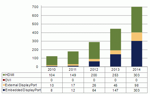 • 移動電腦搭載Embedded DisplayPort界面的比率將在2013年達到35%。