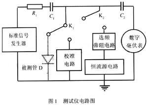 按照gb6570-86方法7.9的要求,二極管上的信號電壓u應足夠小,r1>>r2。故取u≤10mv,r2=10kω,[2]。