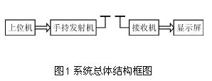 整個系統由三個相對獨立的子系統組成,即上位機、手持發射機、接收機和顯示屏系統。其結構框圖如圖1所示。