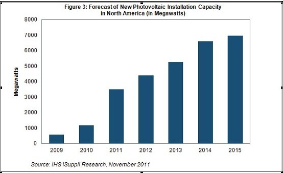 據(jù)IHS iSuppli公司的北美光伏市場(chǎng)報(bào)告,美國(guó)加州的許多太陽(yáng)能項(xiàng)目經(jīng)過(guò)多年開發(fā)之后終于投產(chǎn),預(yù)計(jì)2011年北美的光伏(PV)太陽(yáng)能系統(tǒng)安裝容量將大增200%。