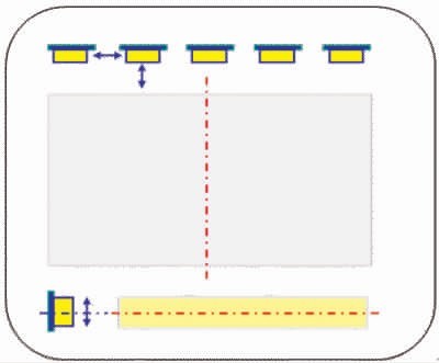 對(duì)背光的合理設(shè)計(jì)可以提高LED的利用效率。影響LED利用效率的結(jié)構(gòu)參數(shù)主要有3個(gè):LED之間的距離;LED發(fā)光面到LGP入光面之間的距離;LED發(fā)光面和LGP入光面兩者的垂直距離。如圖3所示。只有將三者綜合考慮才能最大化LED的利用效率,從而降低功耗。