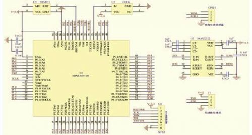 該單片機集成了較豐富的片內外設:模擬比較器A、定時器A、定時器B、串行通信接口USART0和USART1、硬件乘法器、12位ADC、端口1~6、看門狗等。