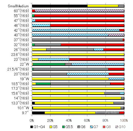 圖2:TFT液晶面板分尺寸/分生產(chǎn)線代的生產(chǎn)份額(2011年)